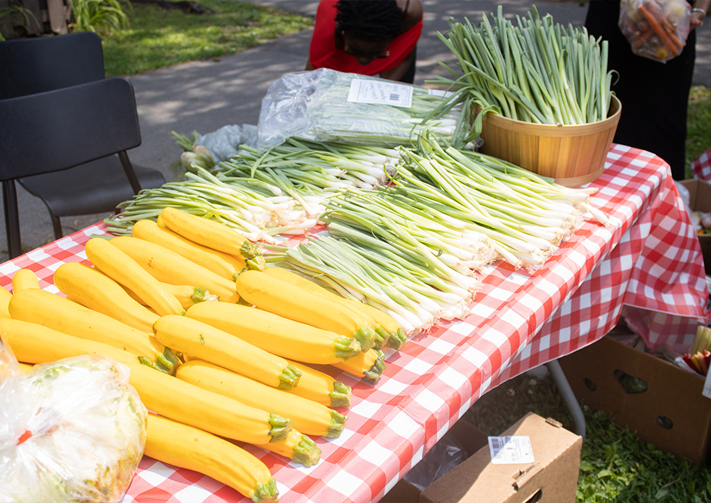 The Community Garden consists of twelve elevated garden beds where members of the community plant vegetables in the spring and summer. Gardeners from the community get free access to soil, gardening tools, and seeds. The Community Garden was launched after community members voiced a need for green space that could beautify the community, be a source of fresh produce, and provide an outdoor space for the community to work together.